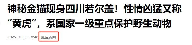 红星新闻《神秘金猫现身四川若尔盖!性情凶猛又称“黄虎”,系国家一级重点保护野生动物》,2025-1-5